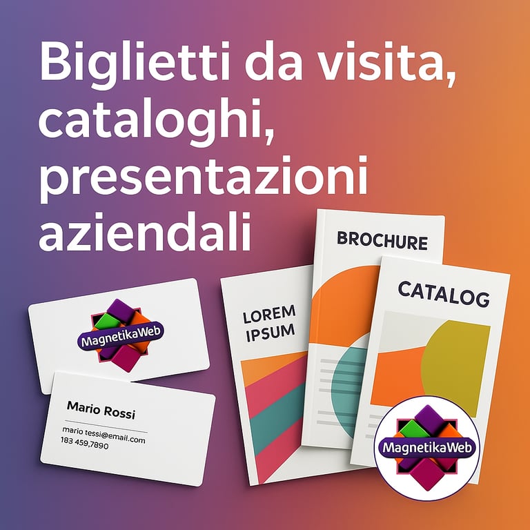 Dai biglietti da visita ai cataloghi aziendali, dalle brochure informative ai volantini promozionali: ogni supporto è progettato su misura, con uno stile coerente e di impatto, perfetto per fiere, appuntamenti commerciali, spedizioni o punti vendita.